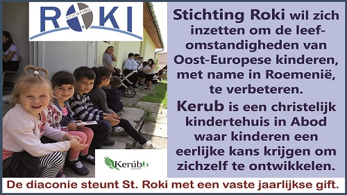 De diaconie ondersteunt verschillende projecten, één ervan is Stichting ROKI. De stichting zet zich in om de leefomstandigheden van kinderen in Roemenië te verbeteren. Zoals in het kleine Roemeense dorp Abod: waar door drie medewerksters en een vrijwilligster uit Nederland 11 kinderen van diverse leeftijden worden opgevangen in het kinderinternaat Kerúb . Kijk voor meer informatie op de website https://www.roki.nl/